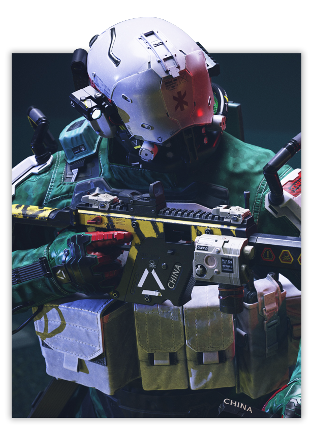 因为科幻与现代题材的原因,这个阶段的贴图绘制将出现透明发光与复合材料等特殊材质 |