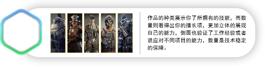 TIPS:当面试官看到你的作品集简历时,会用四条技能项与两条积累项进行评估,它们共同支撑了你的岗位级别与薪资,缺少了任何一条,都会影响到你的晋升...